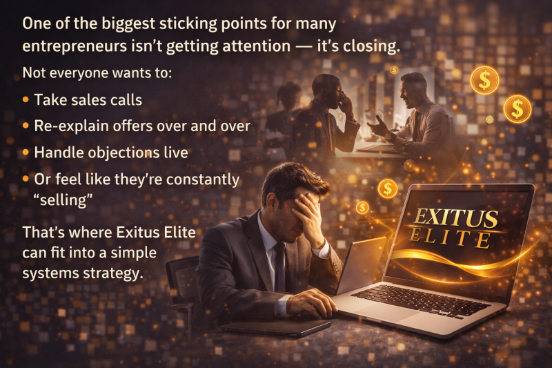 Exitus Elite is a high-ticket affiliate program that offers an optional professional call center to help close sales on your behalf.
